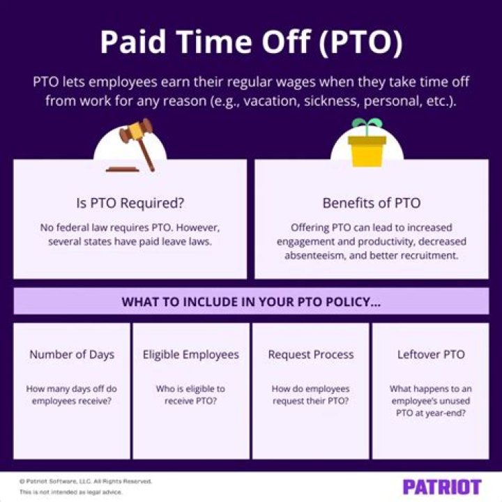 Paid time off (PTO) is a type of company policy that combines vacation, sick and personal time for employees to use as paid time off from work. In most cases, PTO is accrued over a period of time and is credited to an employee’s bank of hours each pay period.